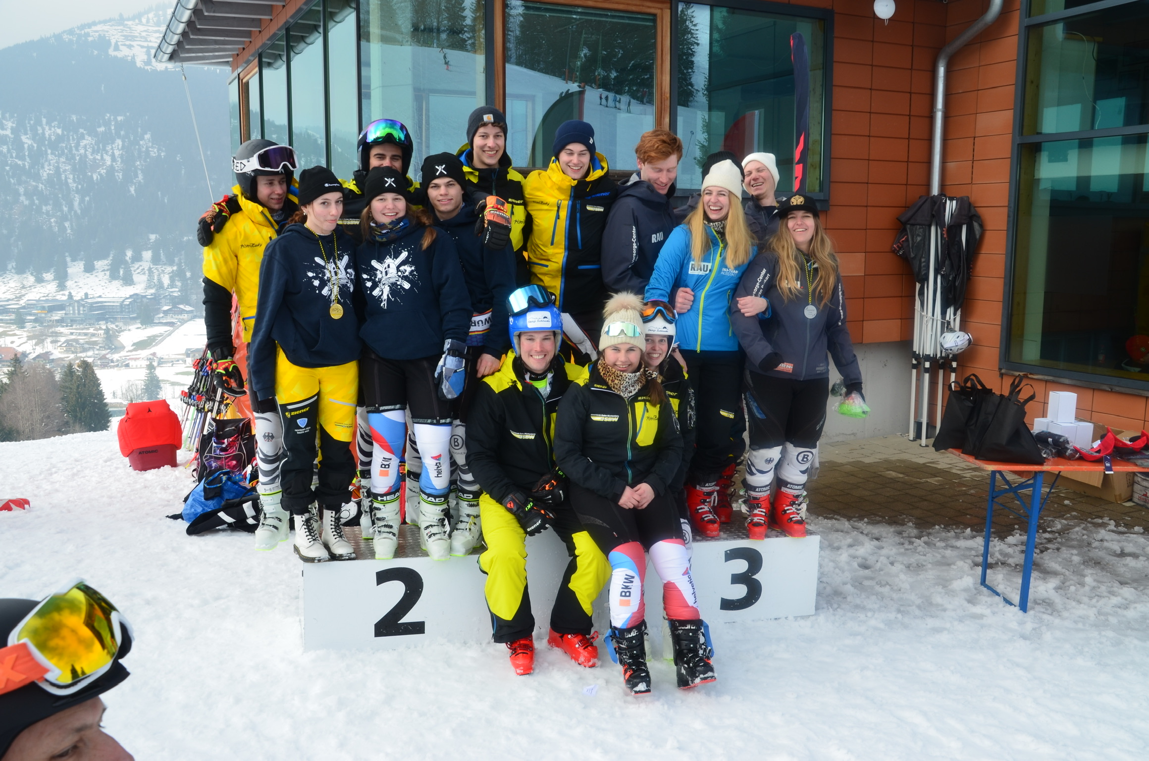 Die beiden Teams von „Reutlingen & Friends“, bestehend aus Jugendläufern des Schwäbischen Skiverbandes, konnten am vergangenen Wochenende das erste Mal am Podium der Skiliga schnuppern. Im Riesenslalom fehlten dem 1. Team – bestehend aus Finja Lieb, Anton Seidemann (beide TSG Reutlingen), Emma Nowosadtko (SC Aichtal), Niclas Baumhof (DAV Überlingen) und Konstantin Holl (SC Heidenheim) – nur 1,4 sec zum 3. Platz. Auch die 2. Mannschaft mit Lisa Schmidt, Benni Haussmann, Mika Mangold (alle TSG Reutlingen), Felix Behnke (SV Ravensburg), Jonas Schmid (DAV Ulm) und Louis Hipp (SV Mahlstetten) wuchs über sich hinaus und sicherte sich einen hervorragenden 6. Platz. Diesen konnte die 2. Mannschaft am Sonntag beim Slalom nochmals bestätigen. Auf Grund der hohen Ausfallquote, am ehemaligen Weltcuphang in Oberstaufen, erreichte die 1. Mannschaft, trotz Verstärkung durch Bastian Bock, nur Platz 8. In der Ligawertung ist Team 1 nun auf Platz 7. Team 2 ist mit nur 6 Punkten Rückstand auf den 8. Platz in Lauerstellung. Dieser berechtigt zum Start beim Bundesfinale, das beide erreichen möchten.